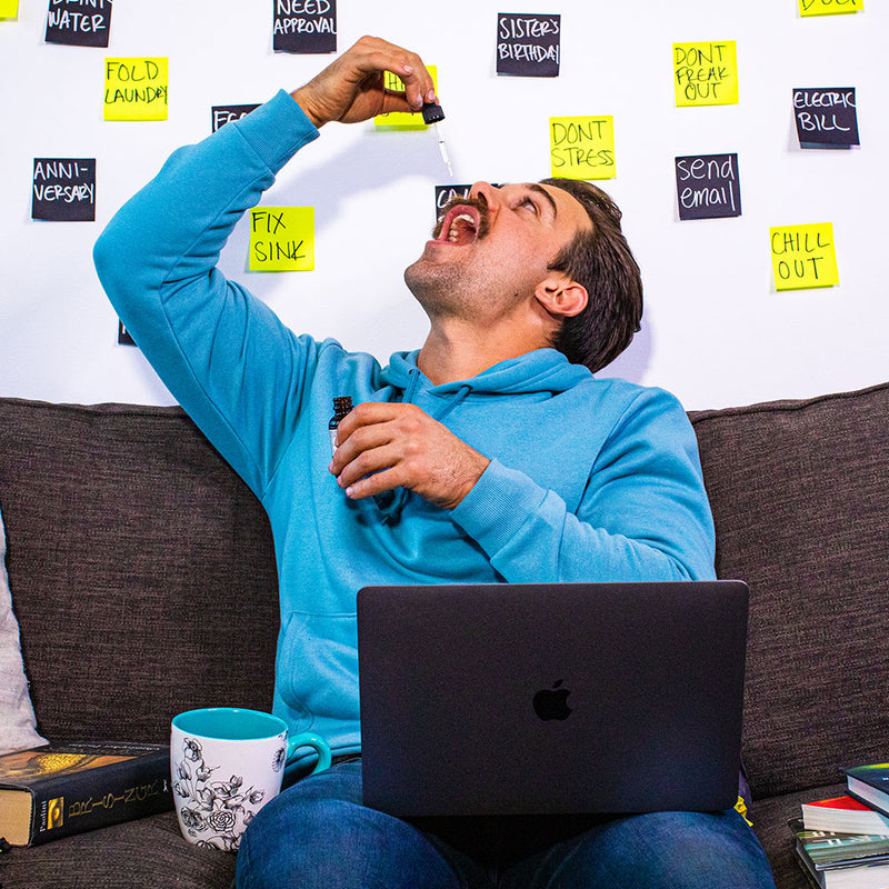 "When my husband doesn't want to hear my end-of-work-day stress rants, I turn to sunday scaries' Sidepiece bundle. Jokes aside, I put the CBD oil in my morning tea and take 2 gummies to unwind around 5pm every day."
